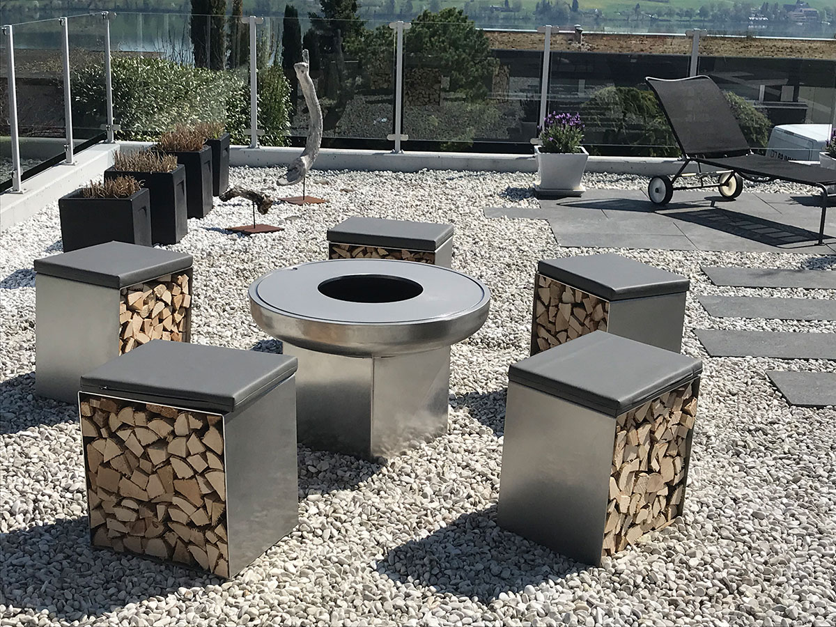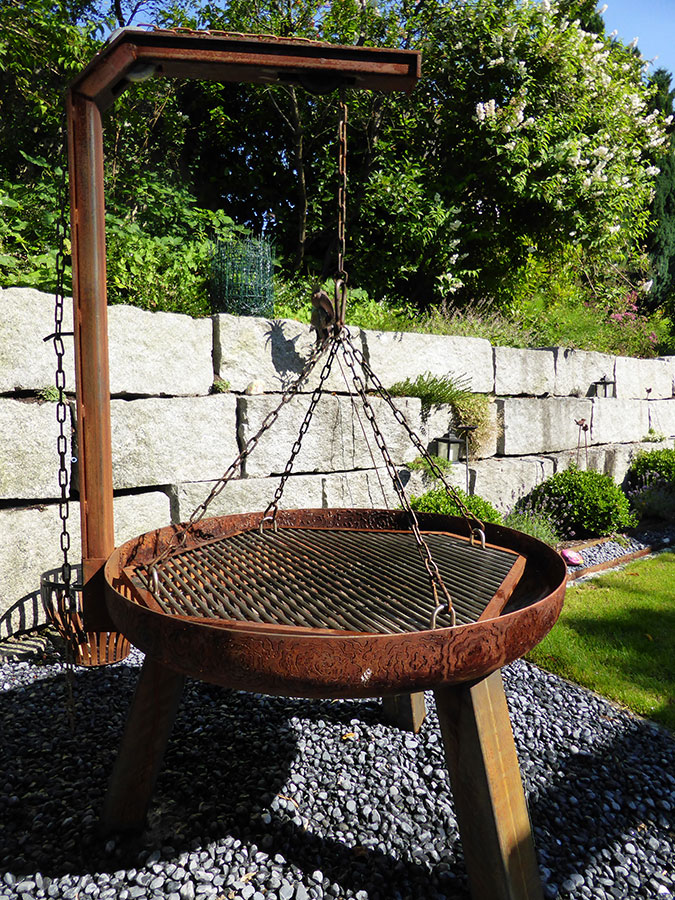 Ein individueller Grill in Edelstahl oder Stahl mit Feuerschalen oder Grillrost ist jederzeit auch ein Hingucker für Ihren Garten. Erhältlich in verschiedenen Grössen ab 80 cm.